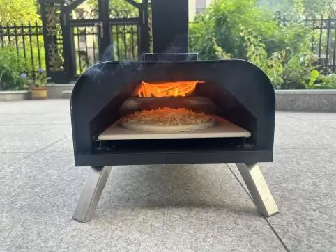 Cocción rápida: placa calefactora de cordierita de doble capa + control de flujo de aire con válvula de mariposa, calienta hasta 950 °F en 15 minutos, hornea pizzas de 12 pulgadas en 90 segundos