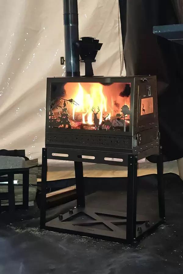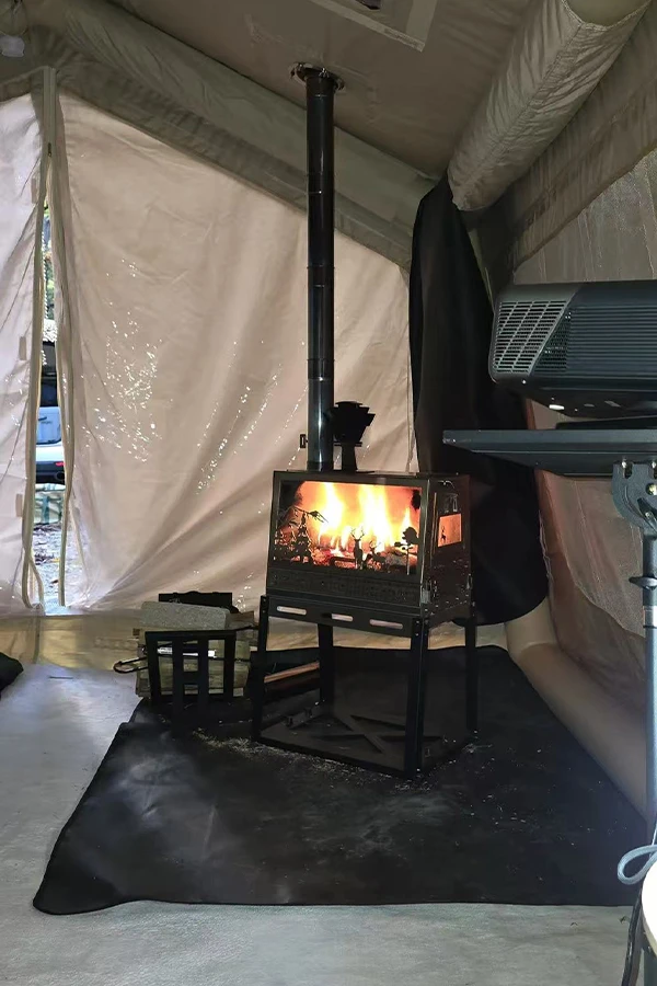 ESCENARIOS DE APLICACIÓN RELACIONADOS Transforma tu experiencia de acampada al aire libre en un refugio acogedor y cálido con la revolucionaria estufa de leña plegable . Diseñada para aventureros modernos y entusiastas del glamping, esta innovadora estufa aporta el encanto de un fuego crepitante a cualquier tienda de campaña, cabaña o refugio al aire libre.